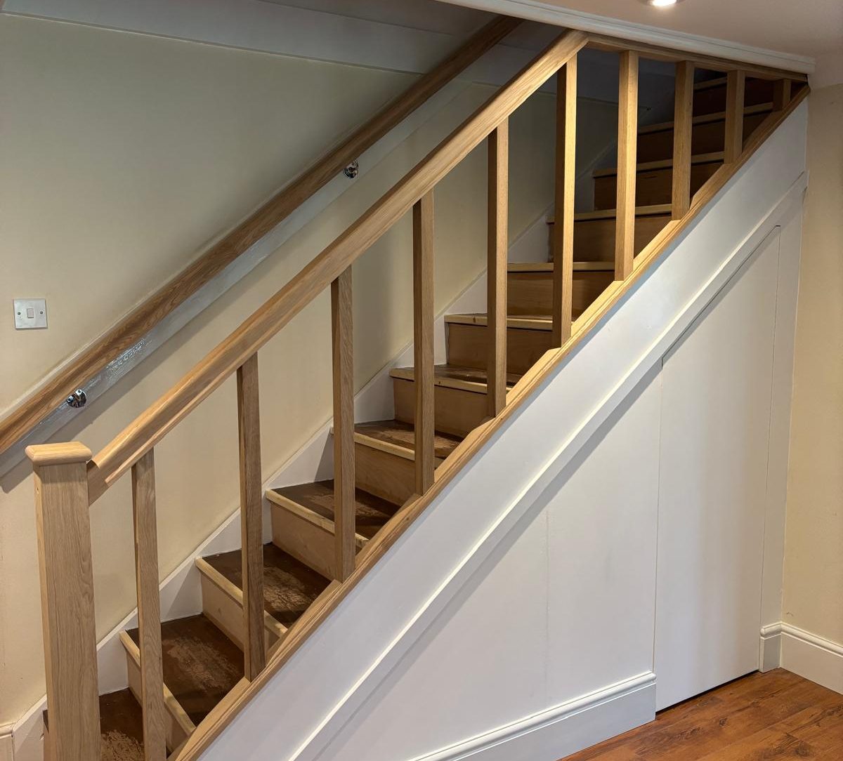 The work mainly comprised a total kitchen re-fit, the conversion of a garage/work space into a second sitting room/snug, 2 new bathrooms & improved stairs.